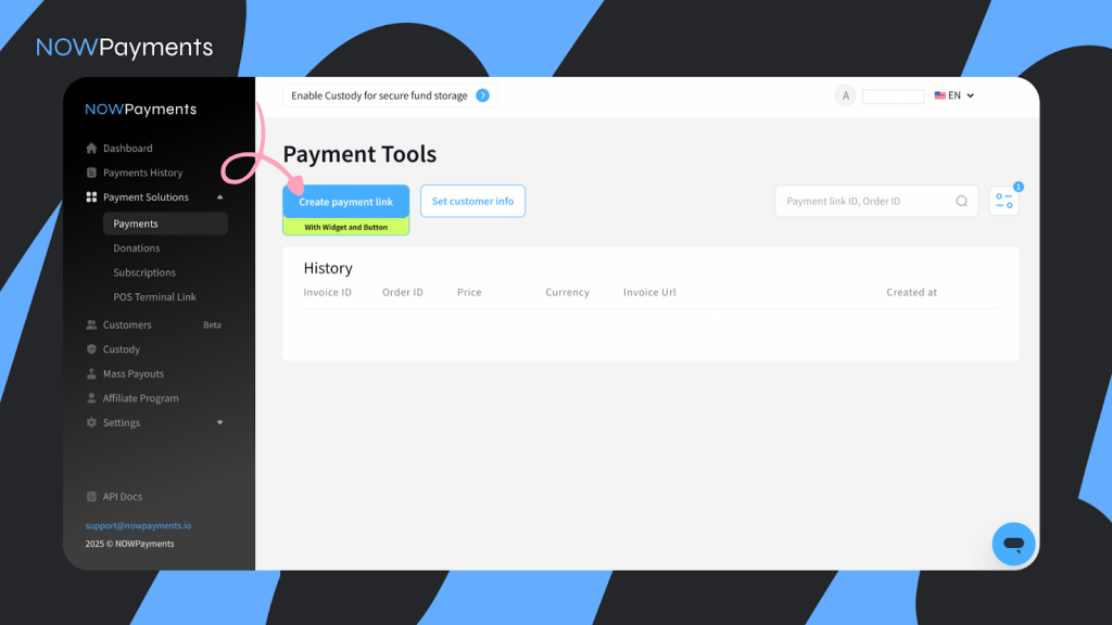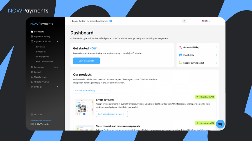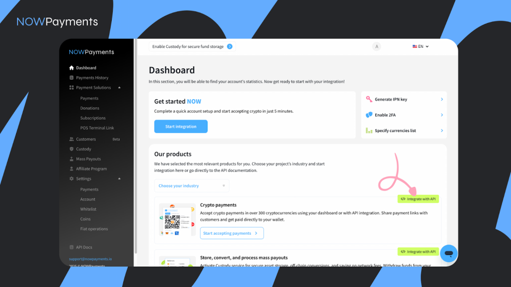 - For a more automated solution, you can integrate via the NOWPayments API.