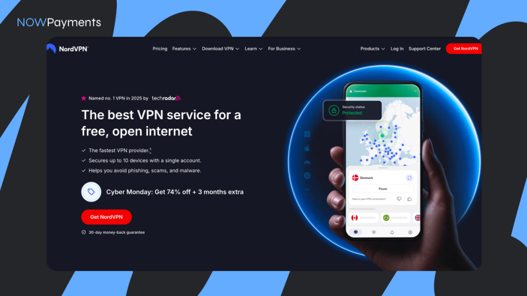 NordVPN is one of the most widely used VPN services worldwide, offering encrypted browsing, a no‑logs policy, and a large network of servers under a privacy‑first jurisdiction. At checkout, NordVPN supports multiple payment methods, including cryptocurrencies. This gives users alternative payment options beyond traditional credit cards or banking systems.