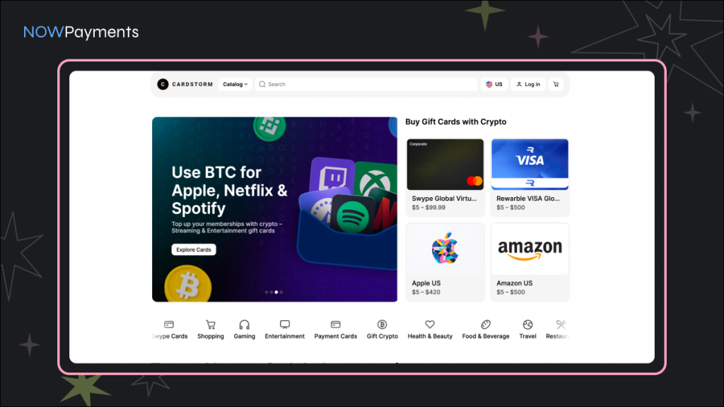 “Every purchase on Cardstorm triggers an automated payment flow powered by NOWPayments API. When a customer selects a gift card and chooses their preferred cryptocurrency, our system instantly generates a payment address, monitors the transaction, and, once confirmed, automatically delivers the gift card code by email.” — Cardstorm Team