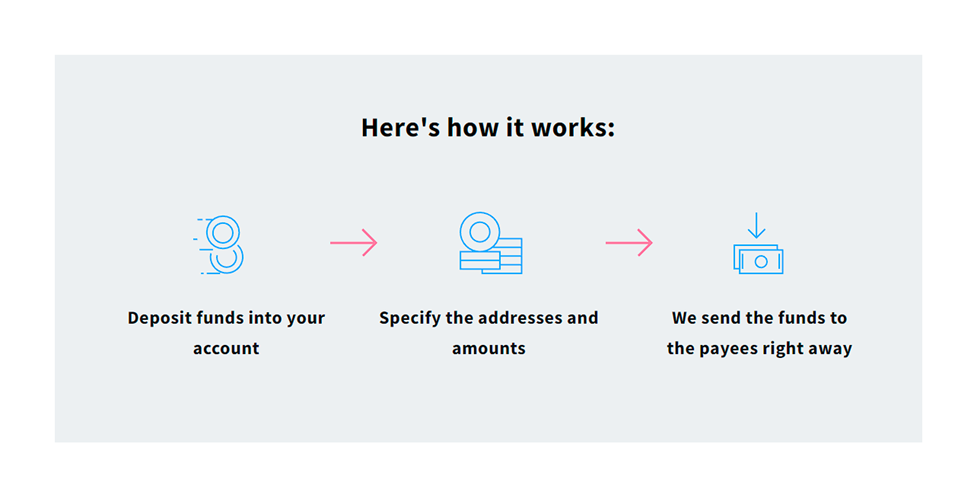 Traditional payment methods and cross-border payments can come with high transaction fees. However, mass payouts aggregate multiple crypto payments into one batch payment, saving on service fees.