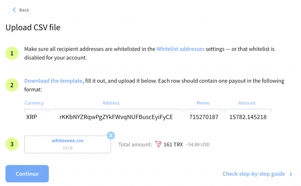We’ve transitioned the Mass Payouts flow from modal windows to full pages, enhancing the user experience by making navigation smoother and more intuitive. In addition, we’ve added a feature that allows users to display the total payout amount in both cryptocurrency and fiat currencies for CSV files, providing greater transparency and ease of use for those managing their financial transactions. These updates reflect our commitment to improving our platform and meeting the needs of our users.
