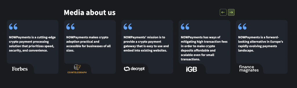 Additionally, we included a “Media About Us” section featuring quotes from relevant articles, which helps to build trust and credibility by showcasing how we are perceived in the media and the broader cryptocurrency community.