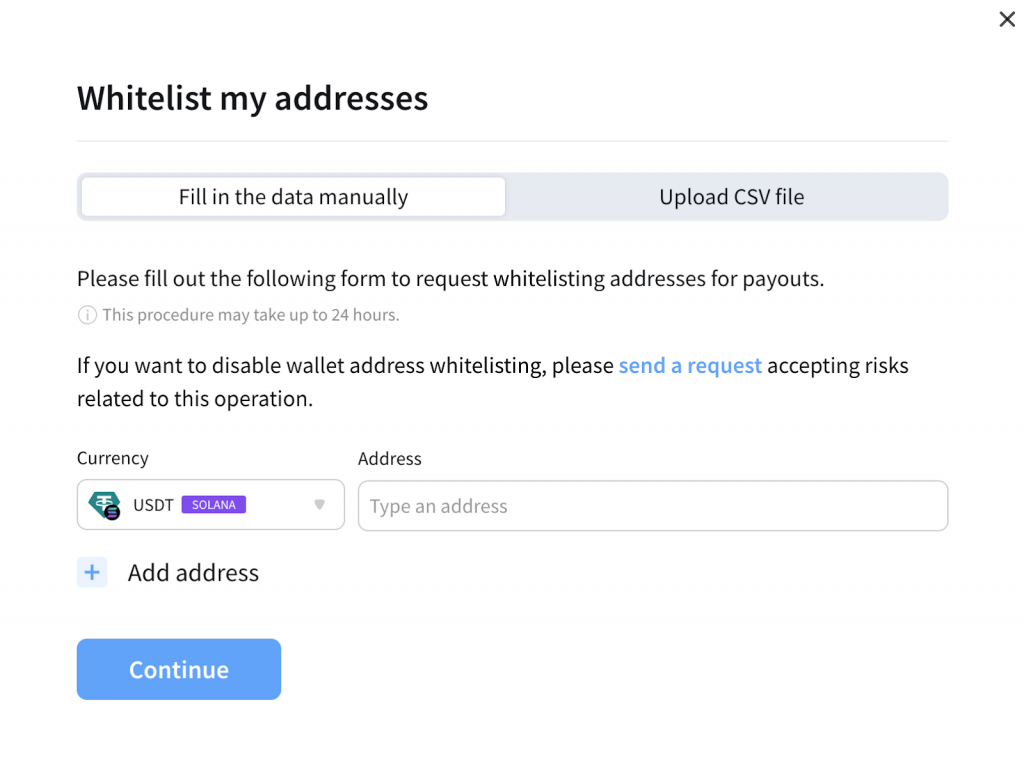 The text in the pop-up window for whitelisting on the Custody page used to be wrong.