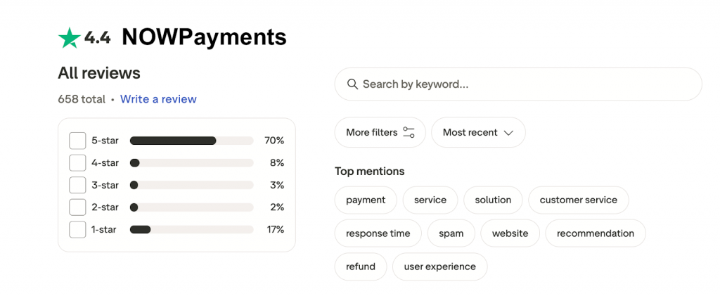 NOWPayments enjoys a generally positive reputation across Reddit and TrustPilot. Users consistently praise its speed, reliability, and helpful support. Merchants highlight smooth integrations with platforms like WooCommerce and seamless payment processing [6]. The ability to integrate with a wide range of cryptocurrencies is another appreciated feature, making it a flexible option for various industries. However, some users mention that custom setups can be time-consuming for those with unique needs. Overall, most users agree that NOWPayments delivers on its promises and provides a robust service for large enterprises and high-volume transactions [7].