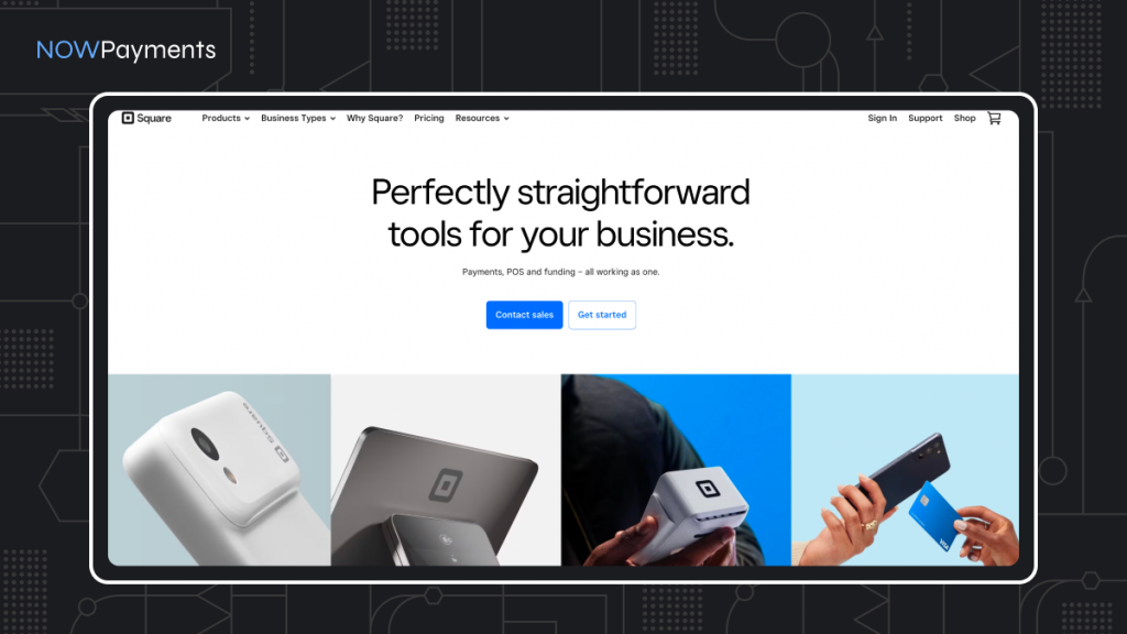 | Square | Major cards (Visa, Mastercard, AmEx, Discover), contactless, mobile wallets (Apple Pay/Google Pay) and invoices. | ~2.9% + $0.30 per online card charge (varies by channel). | Non‑custodial |