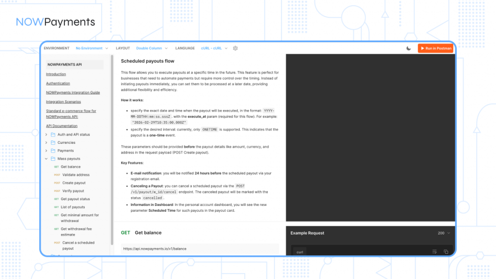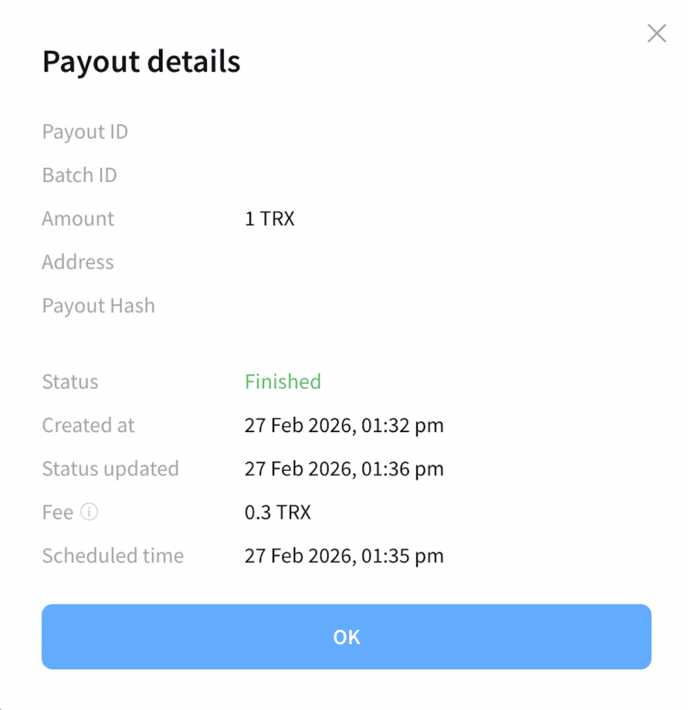 - Dashboard Access: Right now, you need to use the API to create a scheduled payout. However, if you look at the payout details page in your personal account (dashboard), you will already see the new “Scheduled time” field. This lets you visually track your upcoming payments. The ability to create them from the dashboard is coming soon!