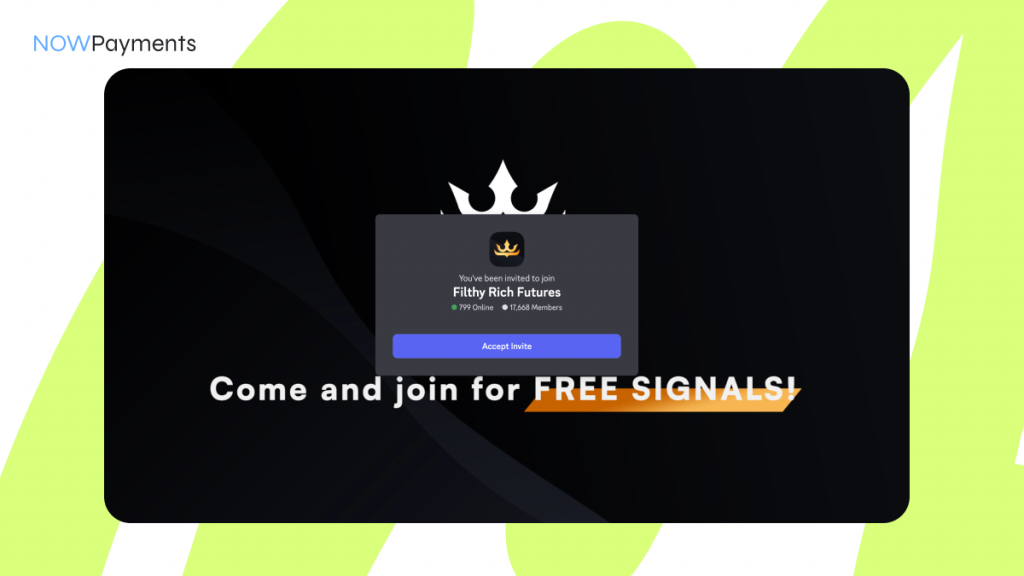 Filthy Rich Futures (FRF) is a futures‑trading-focused crypto Discord server on the Discord platform with public stats showing about 17,668 members at listing. It markets high‑leverage crypto futures setups, free-to-join access plus optional premium signals, and a claimed “80%+ average monthly win rate over 4 years.” Active traders seeking the best crypto trading-style alerts and fast setups are the target audience of this trading server, not long-term holders. As a result, it’s not ideal for passive investors or beginners. If you are looking for Discord crypto servers for beginners, a different server with educational resources and lower risk is a better fit. FRF’s focus on short‑term, high‑risk strategies means upside can be large, but so can losses from mis‑execution, slippage, or leverage errors.